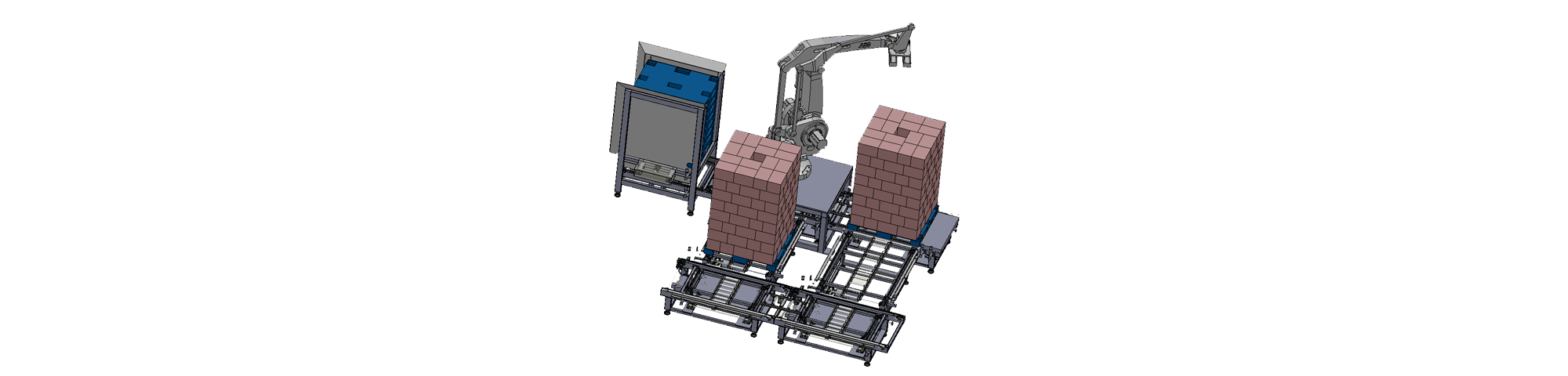 全自動(dòng)機(jī)械手碼垛機(jī)通過機(jī)械臂特有的結(jié)構(gòu)可實(shí)現(xiàn)高速的拾放動(dòng)作,可實(shí)現(xiàn)生產(chǎn)線無人化。棧板庫自動(dòng)輸出空托盤??勺詣?dòng)分類對(duì)接1-3臺(tái)裝箱機(jī)(視碼垛機(jī)器人型號(hào)而定),碼垛后自動(dòng)纏繞包裝機(jī)(選配)。